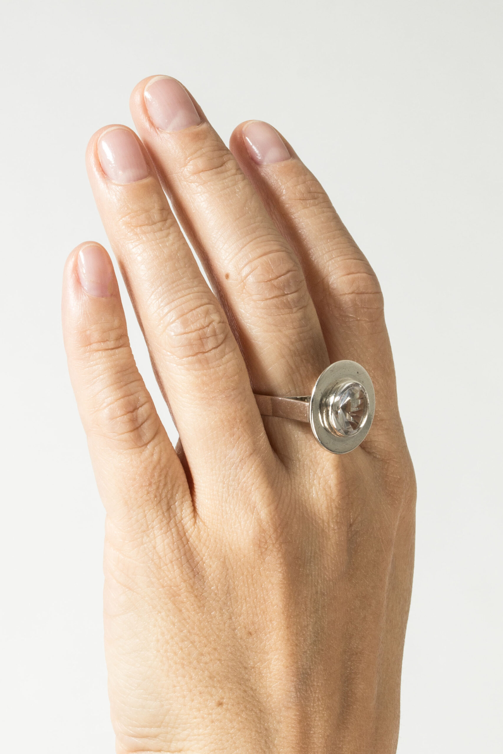 Midcentury silver and rock crystal ring by Elis Kauppi