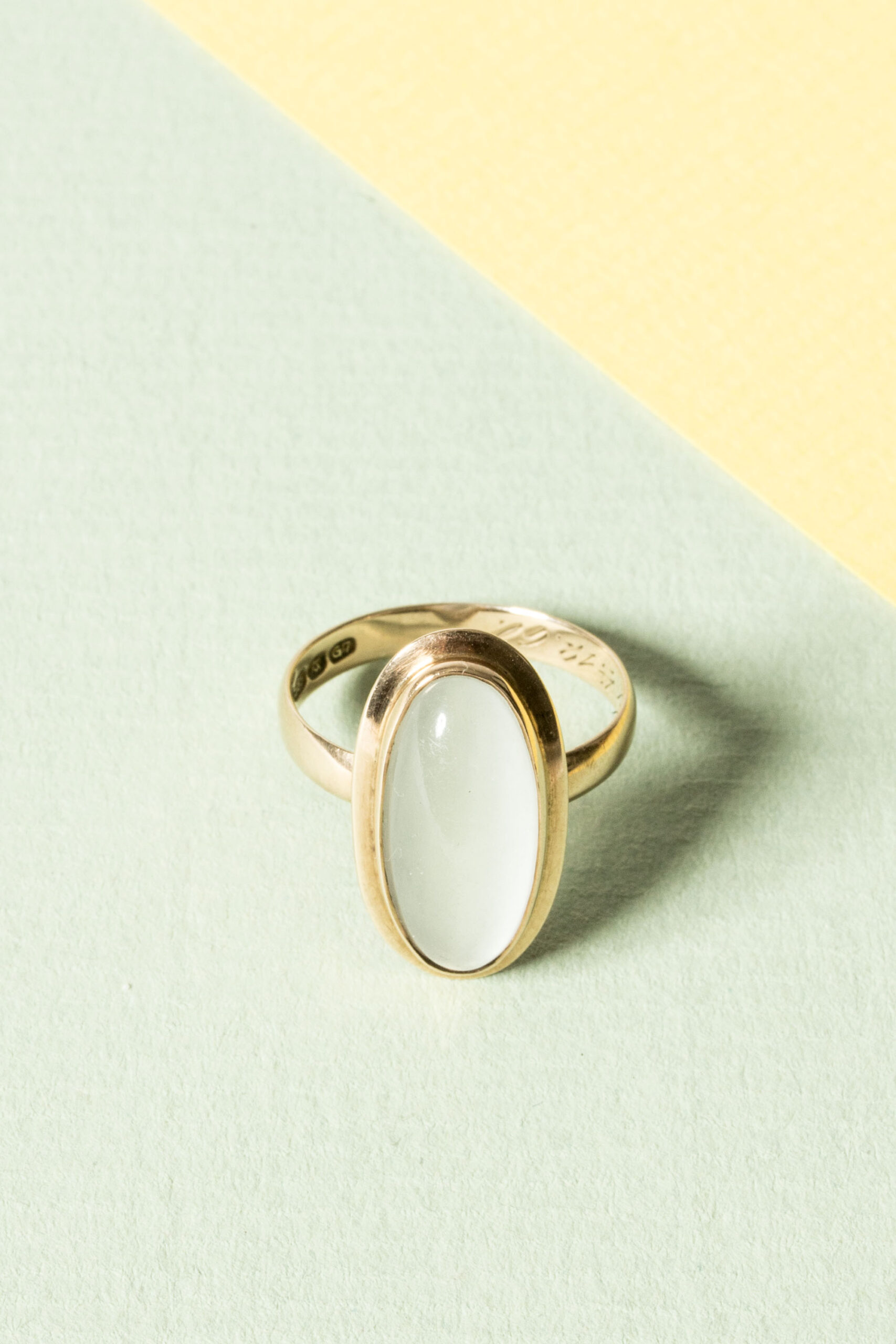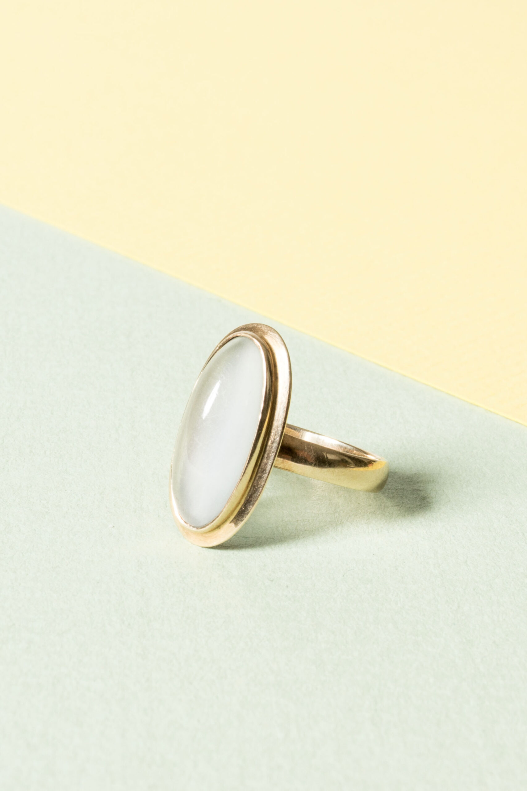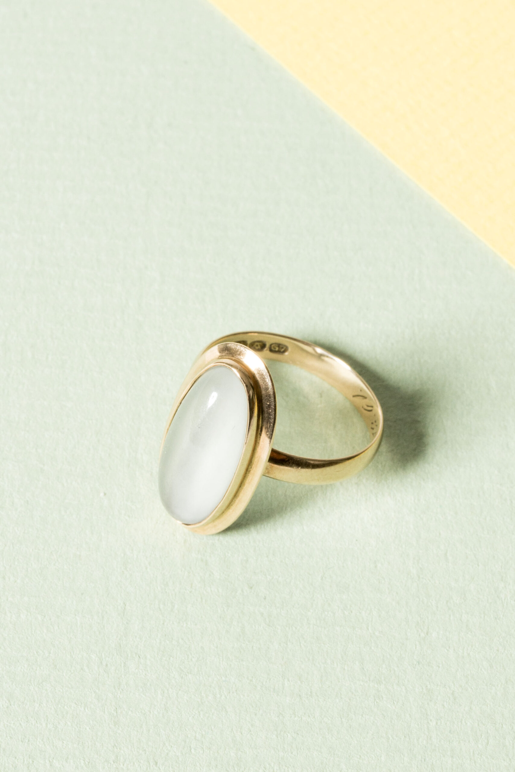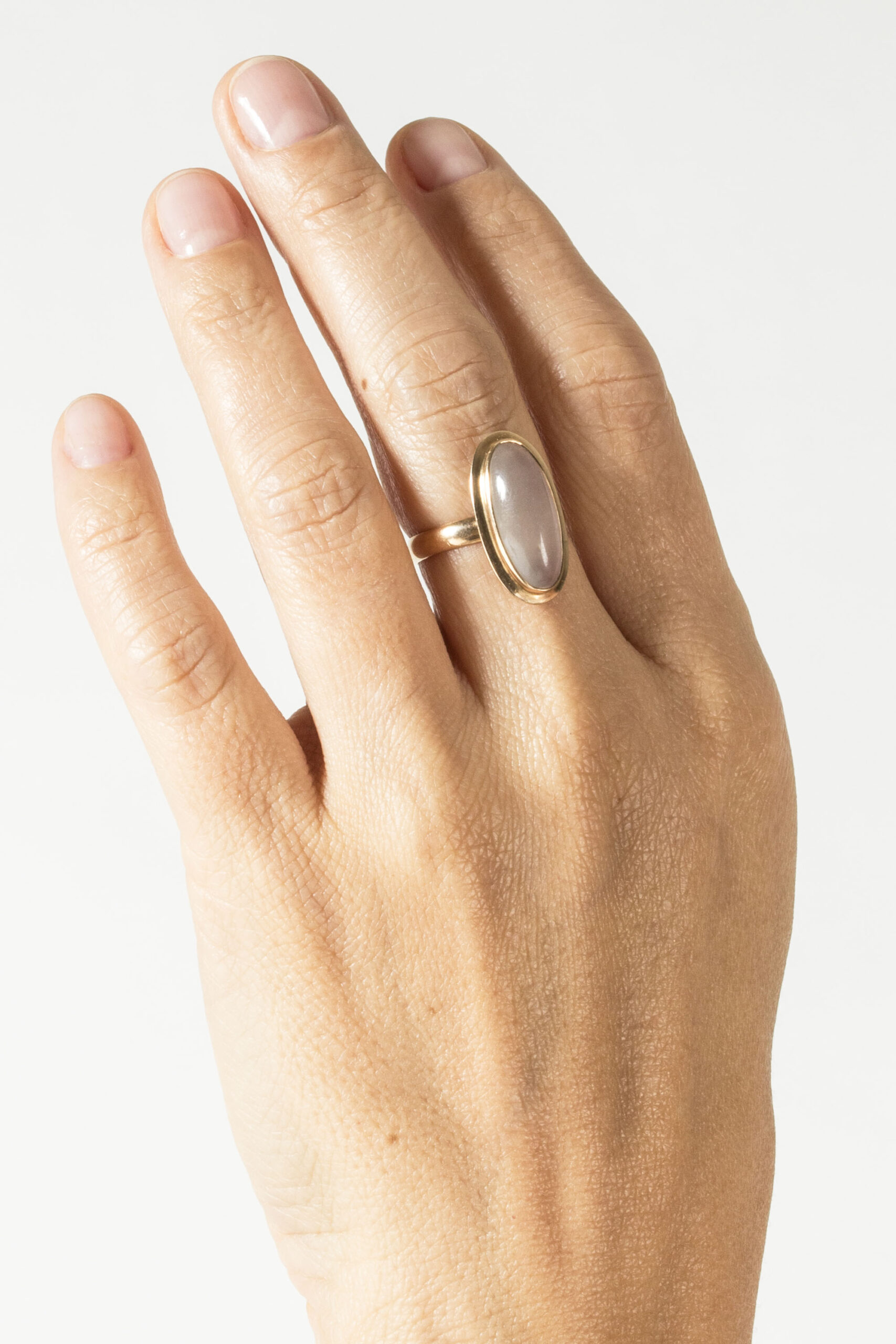 Beautiful gold ring by Mikael Orvo Reivonen, in a clean design with an oval moonstone.