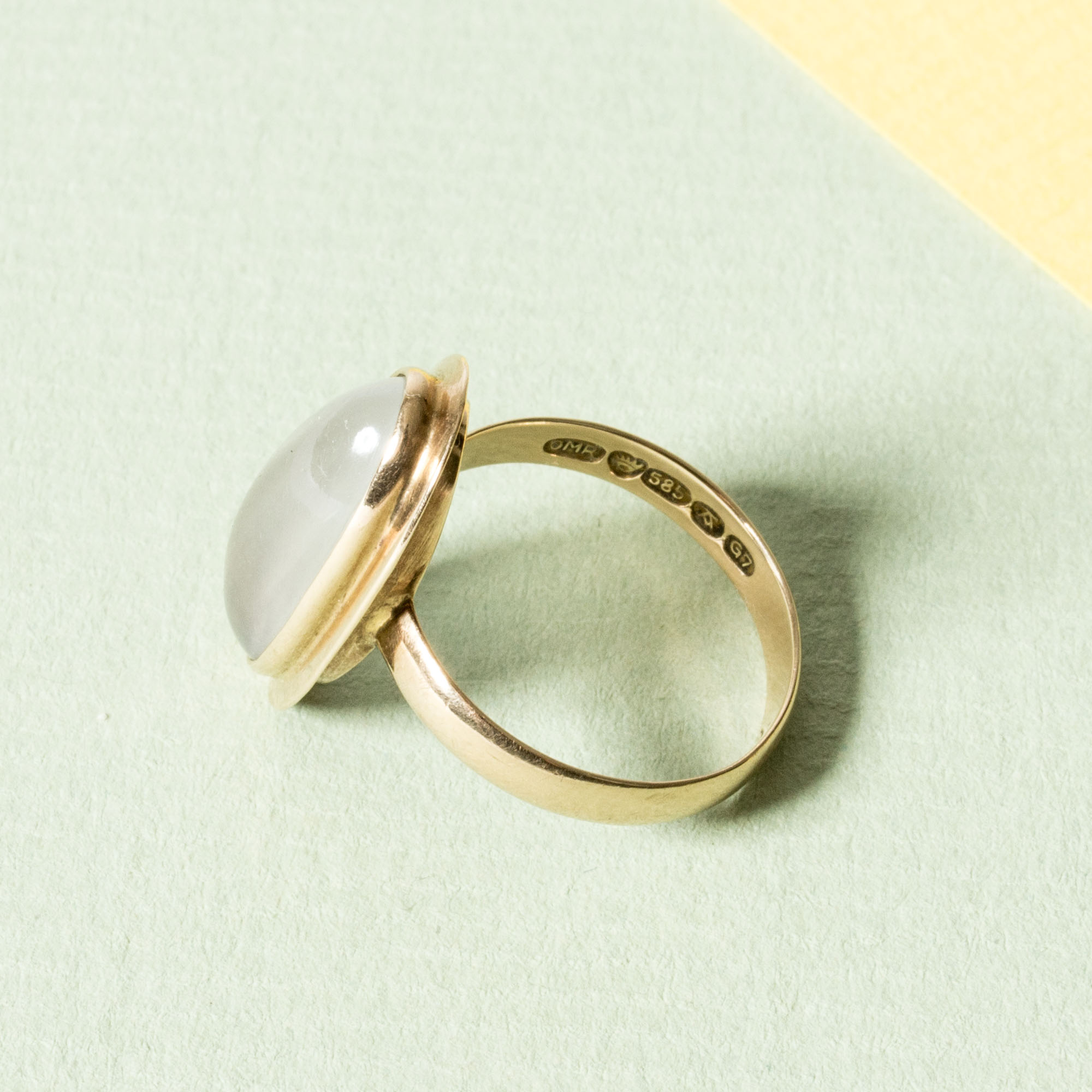 Midcentury Gold and Moonstone Ring