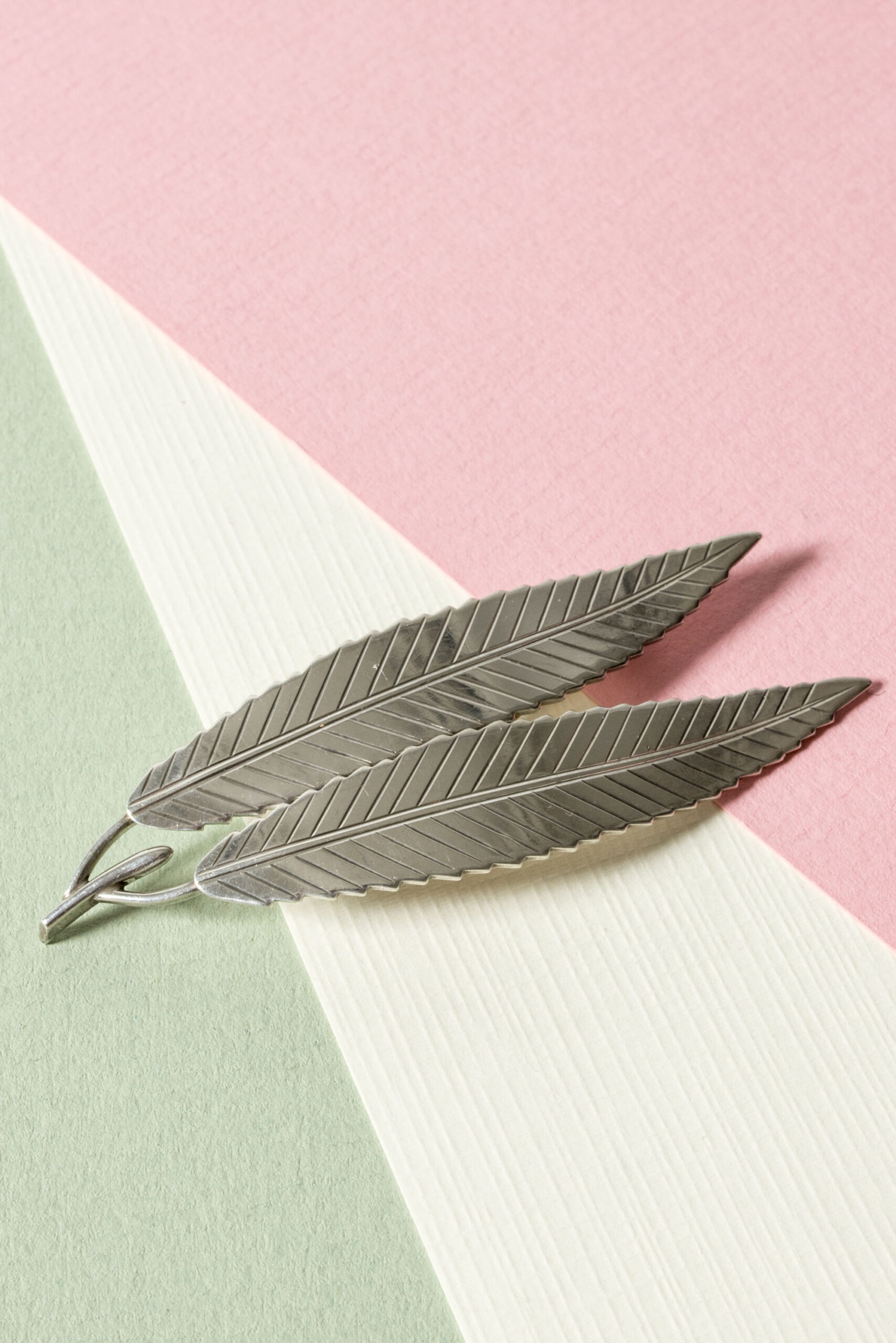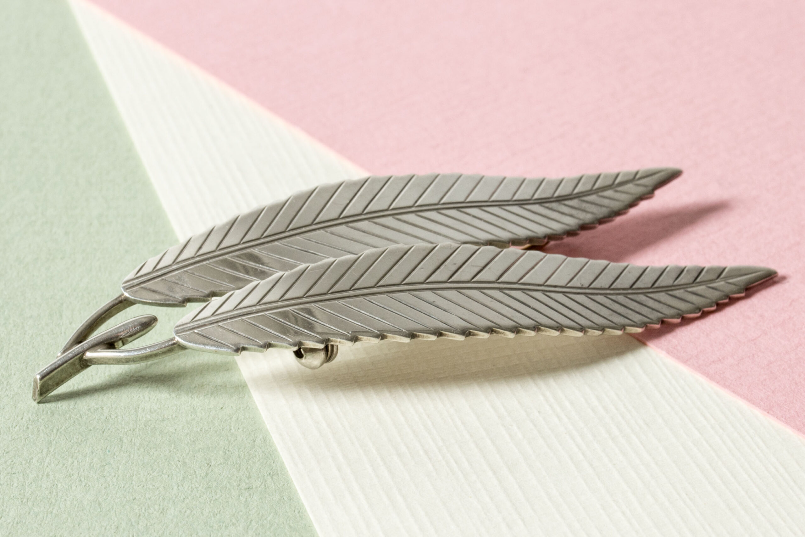 Beautiful silver brooch in the form of naturalistic silver leaves on a twig by Gertrud Engel. Lovely attention to detail.