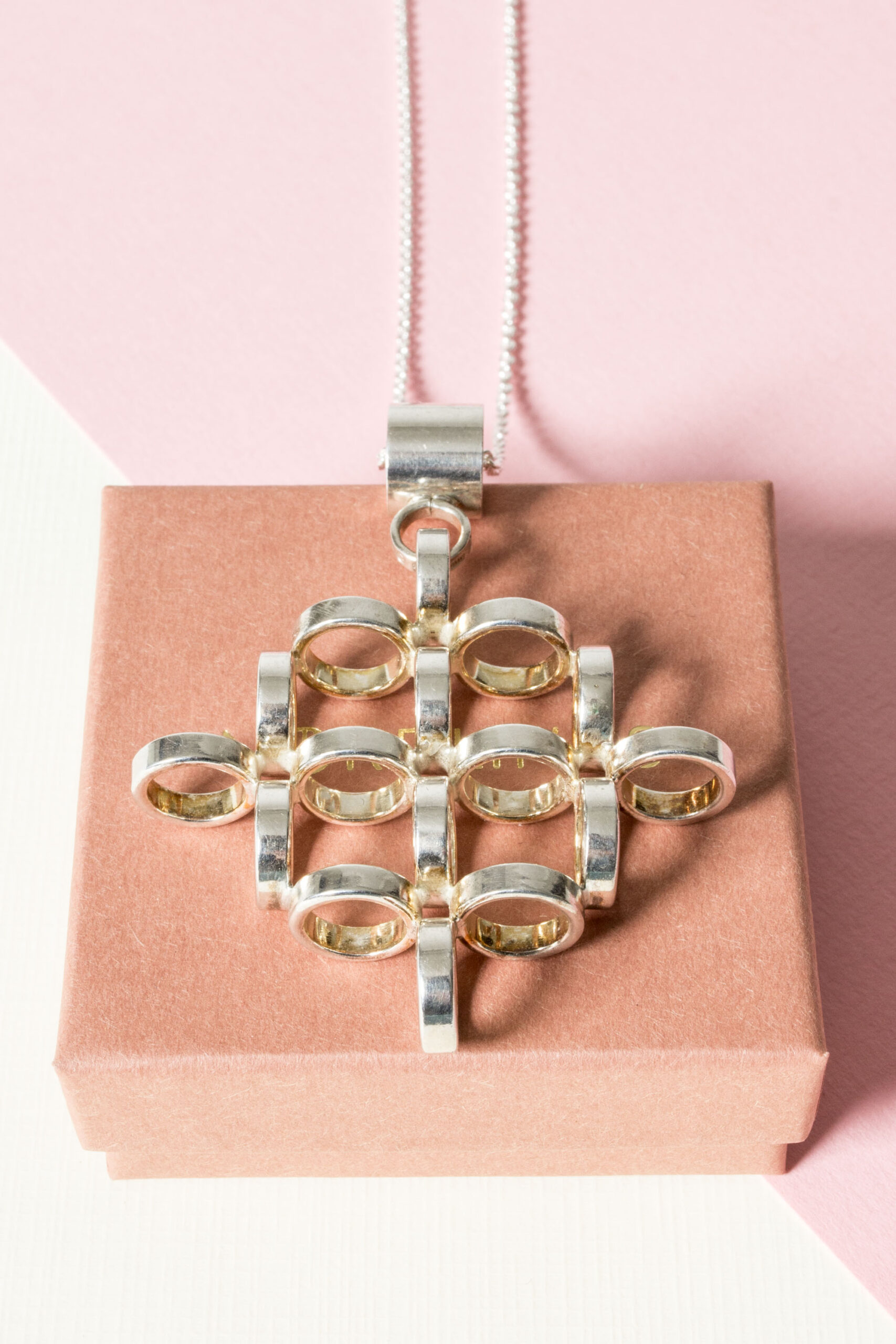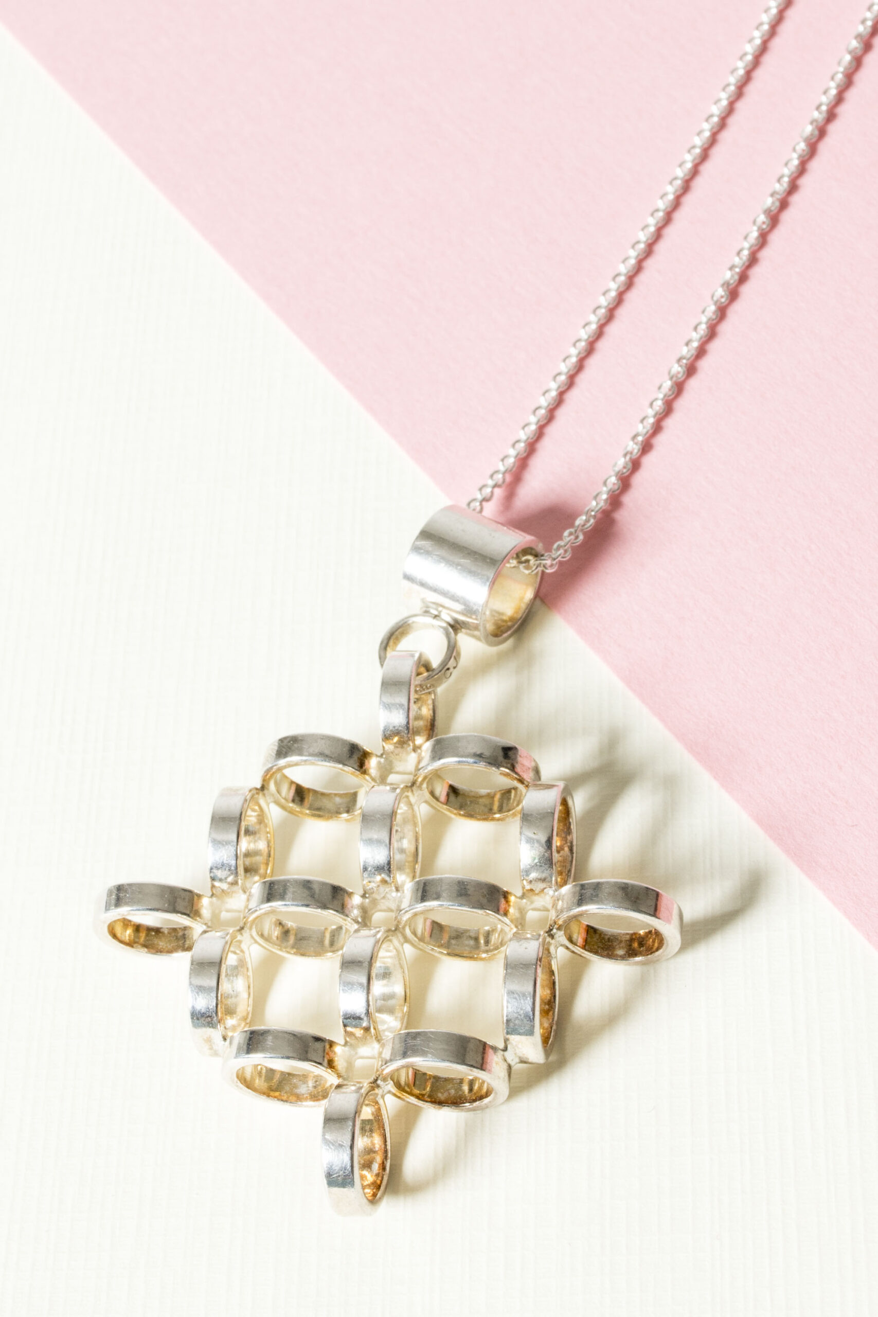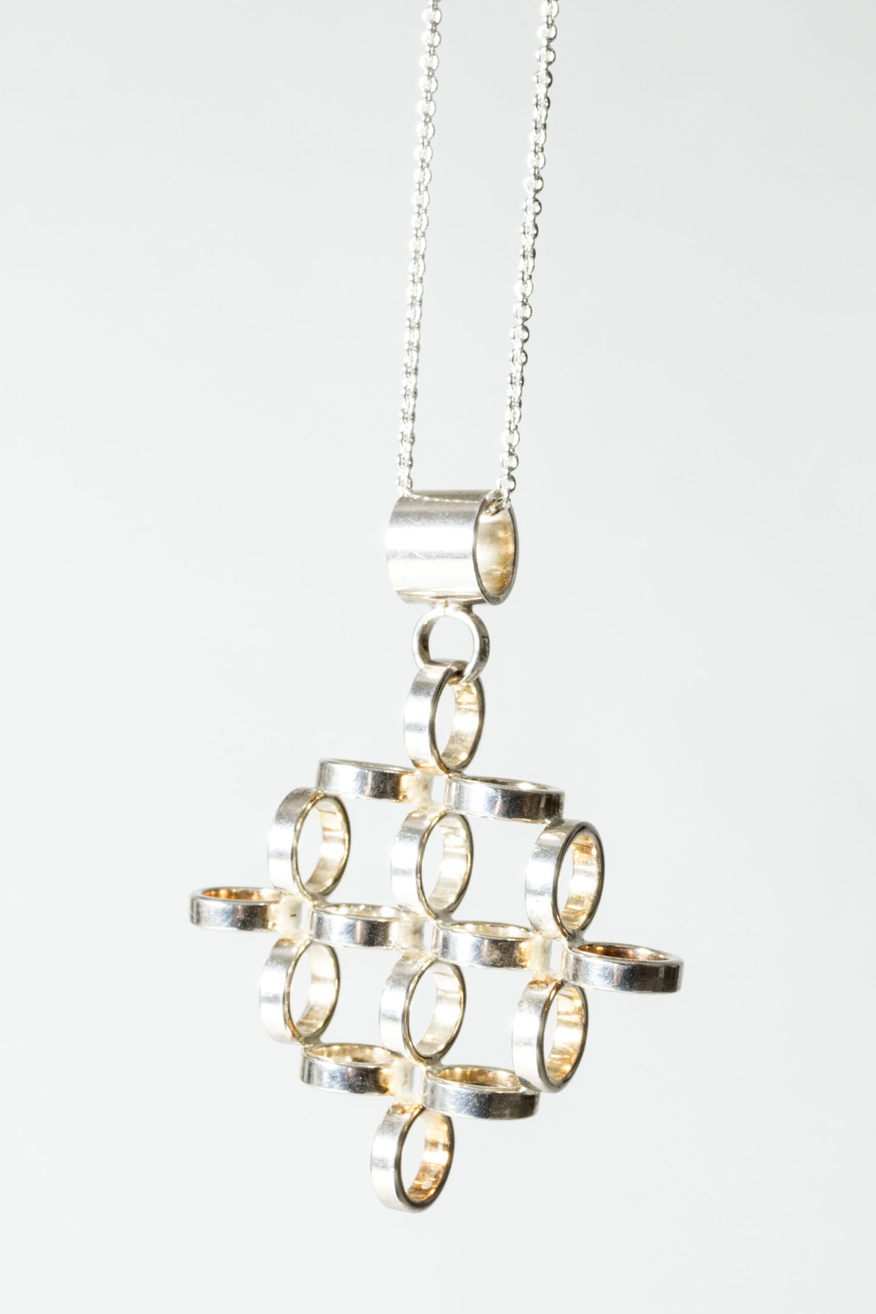 Oversized silver pendant by Cecilia Johansson, in beautiful design with circles in a voluminous diamond form.