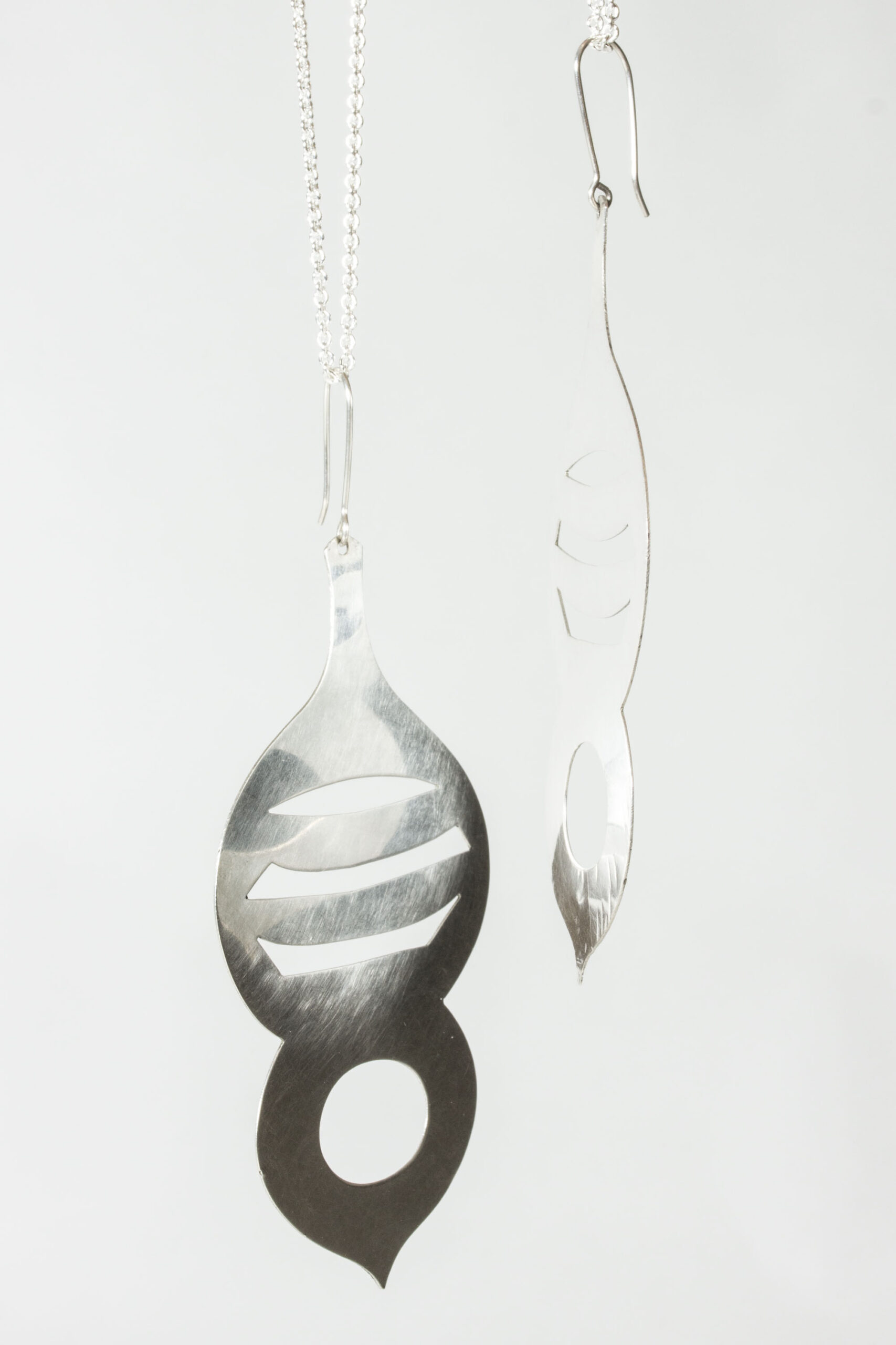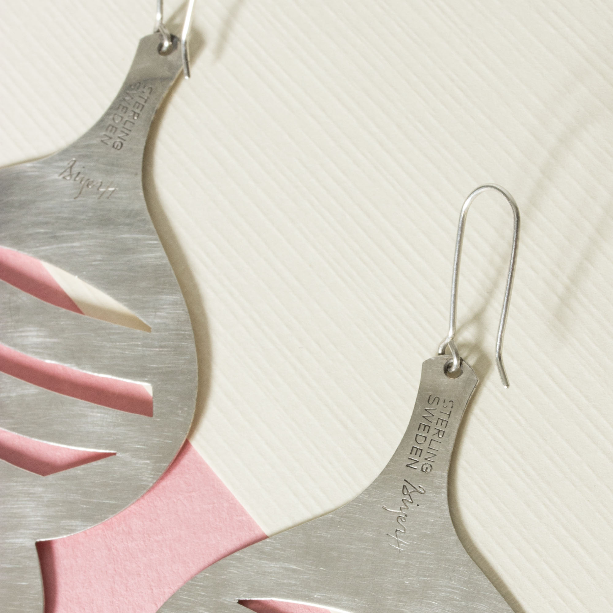 Pair of amazing, oversized silver earrings by Birger Haglund, in an imagantive organic form. A very joyful design.