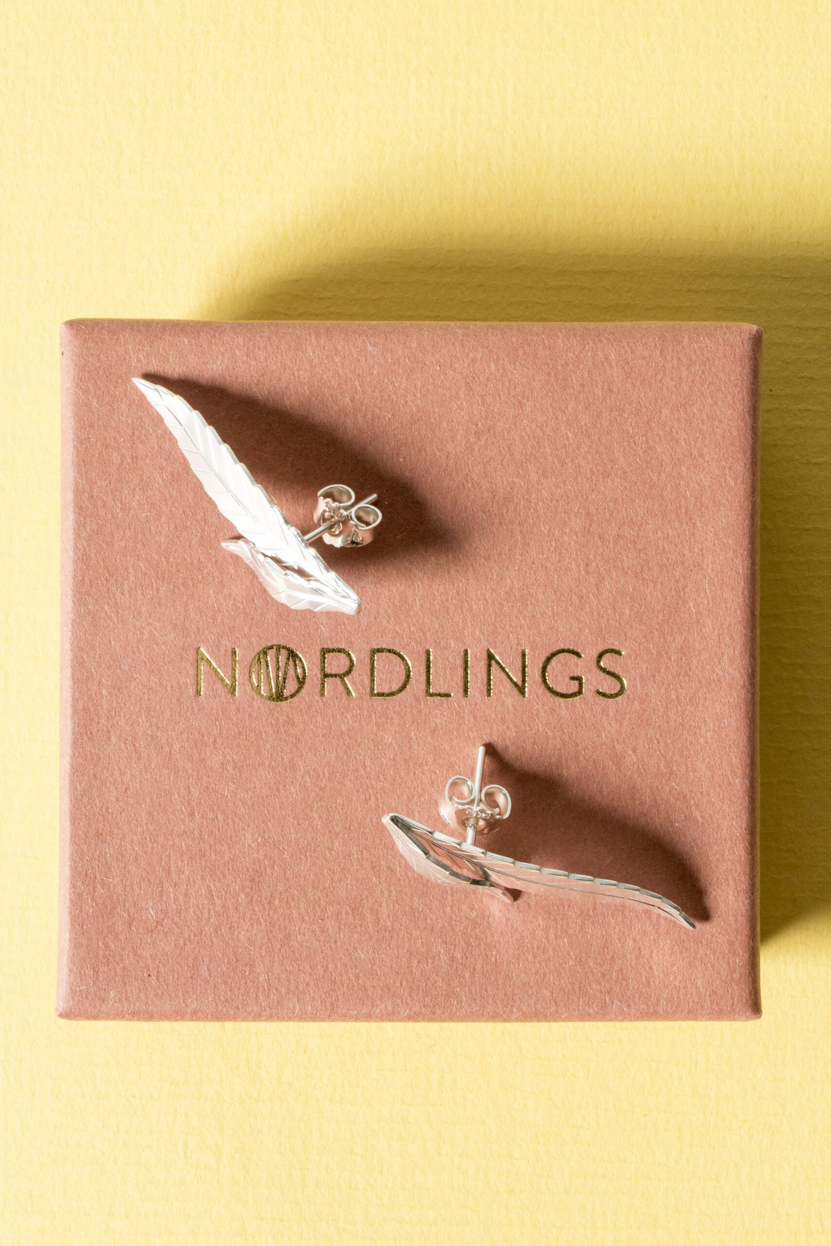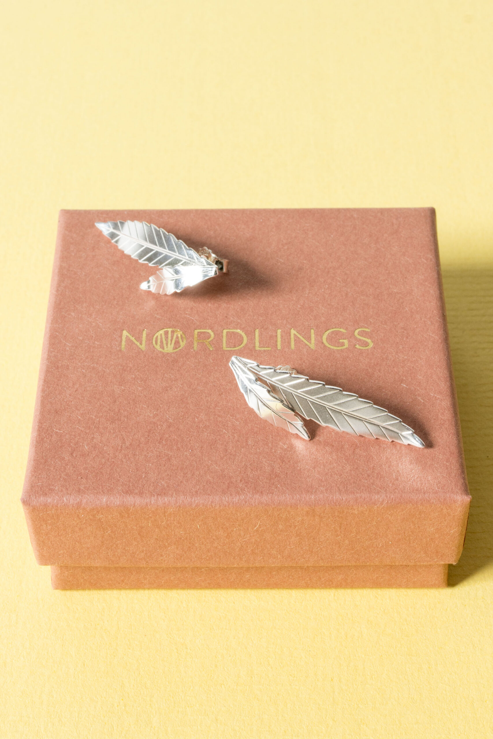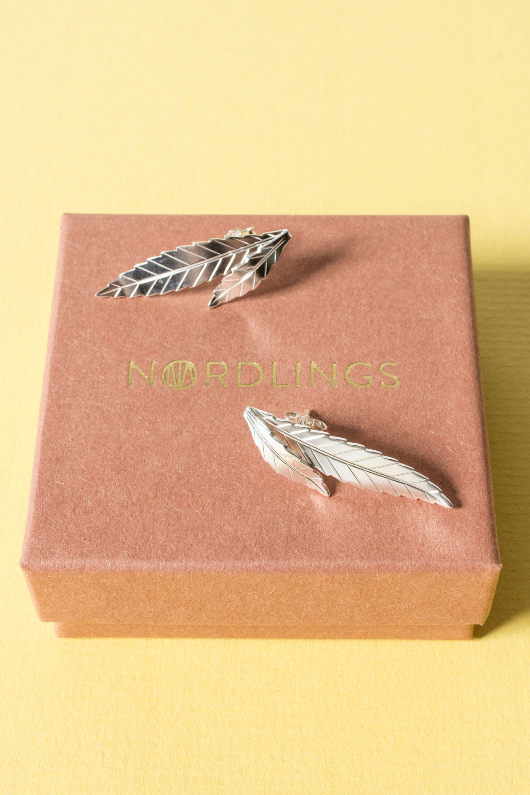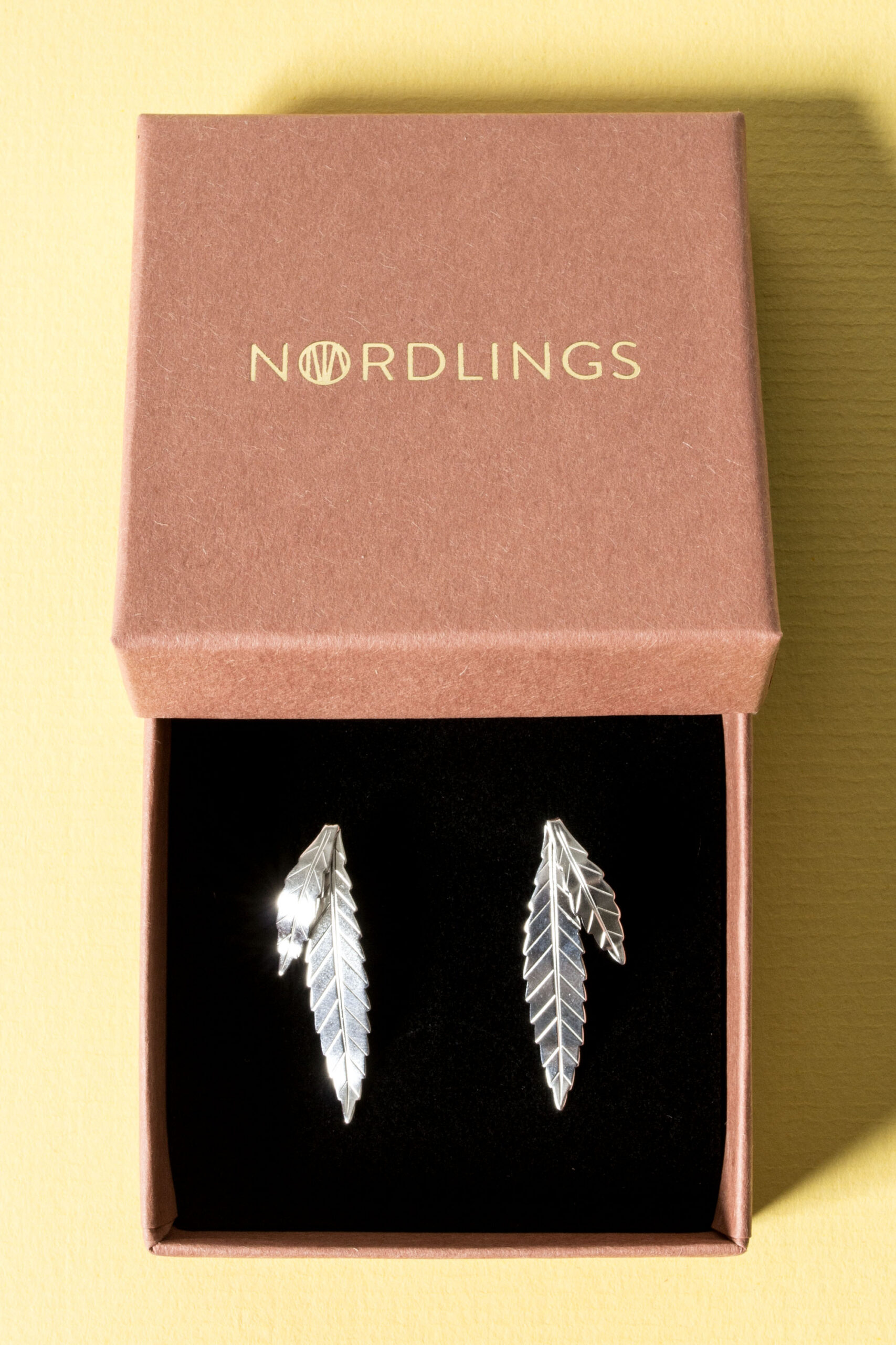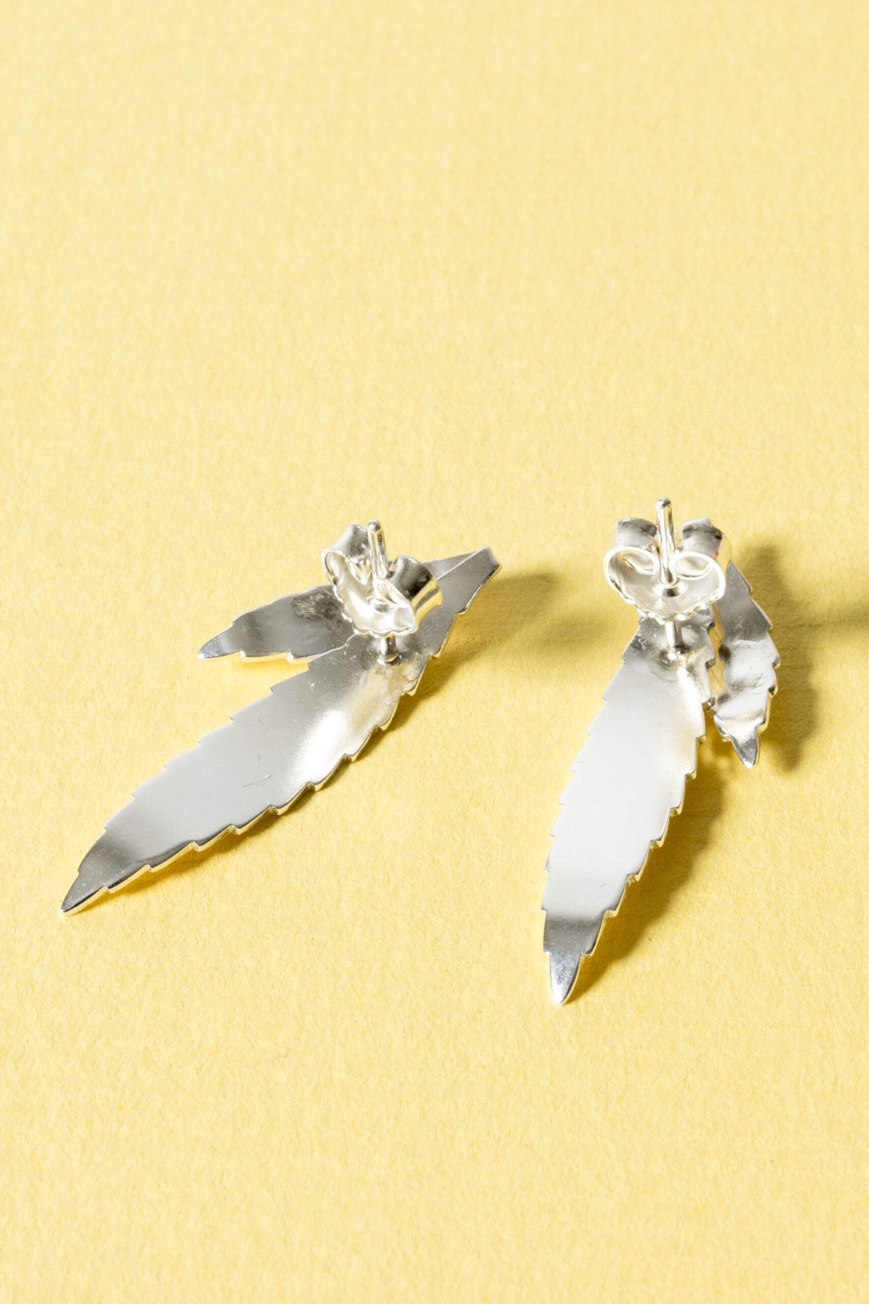 Pair of exquisite silver earrings by Gertrud Engel, in the design of slender leaves with a modern organic look.