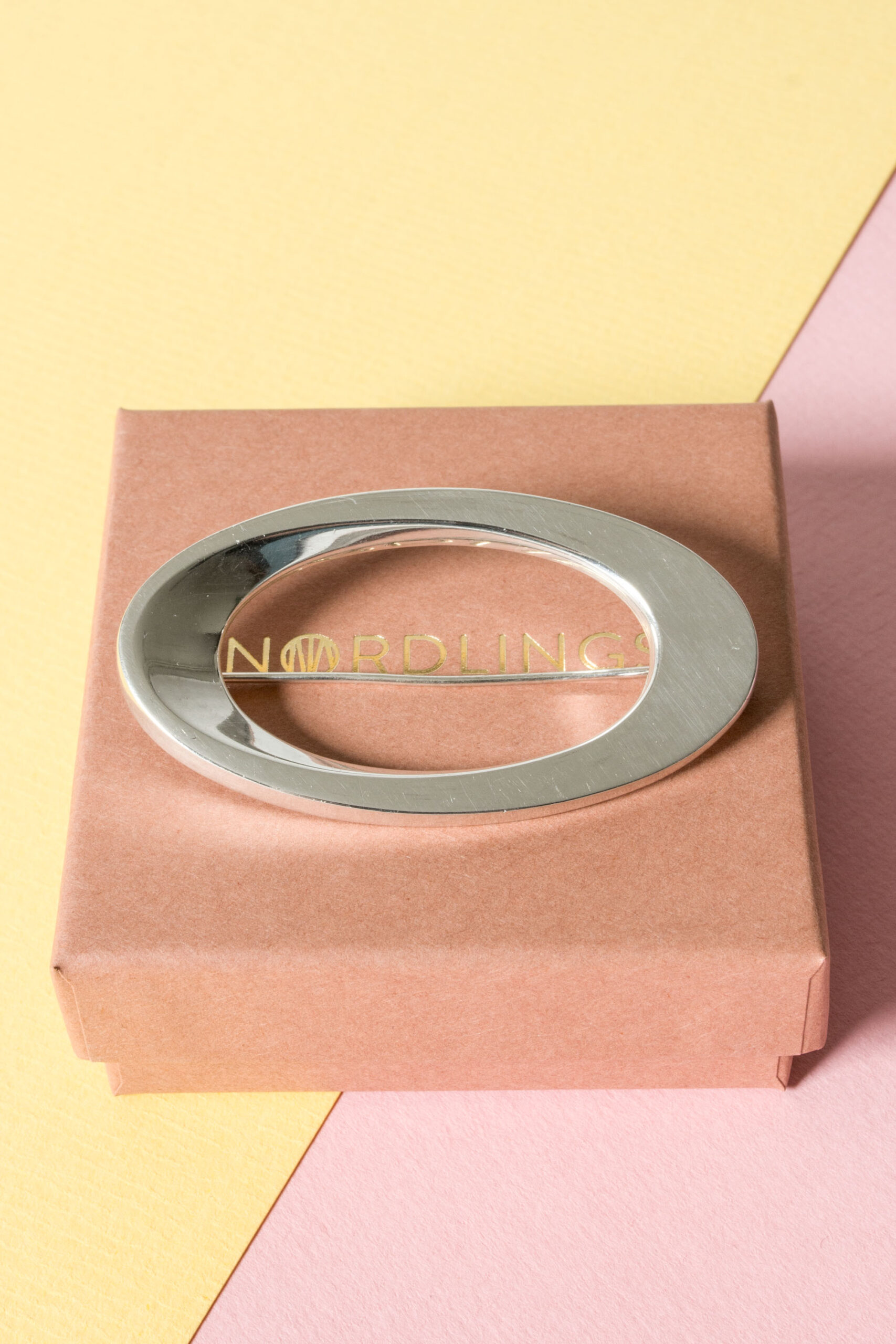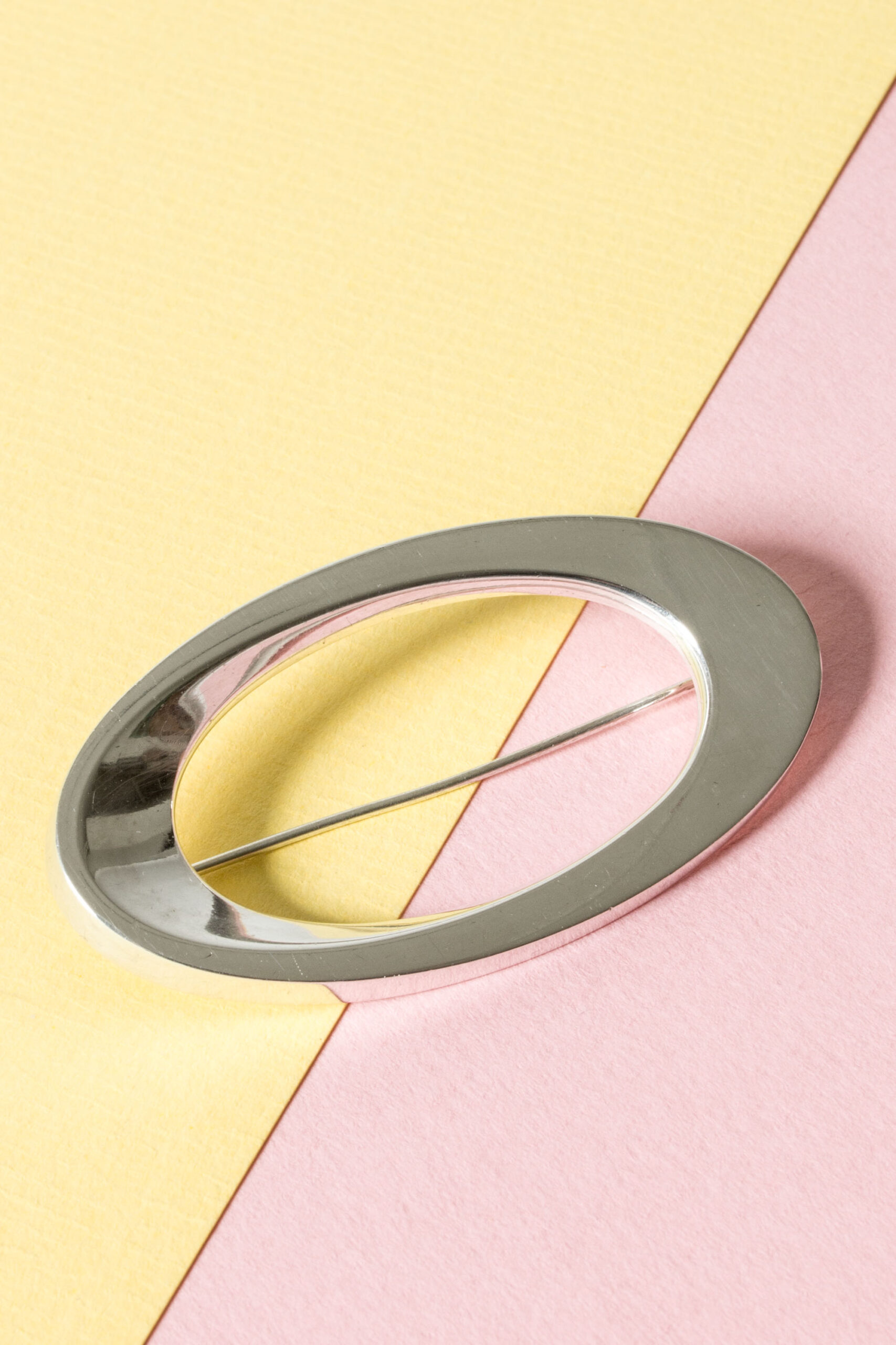 Elegant silver brooch by Bent Gabrielsen Pedersen in a streamlined oval form.
