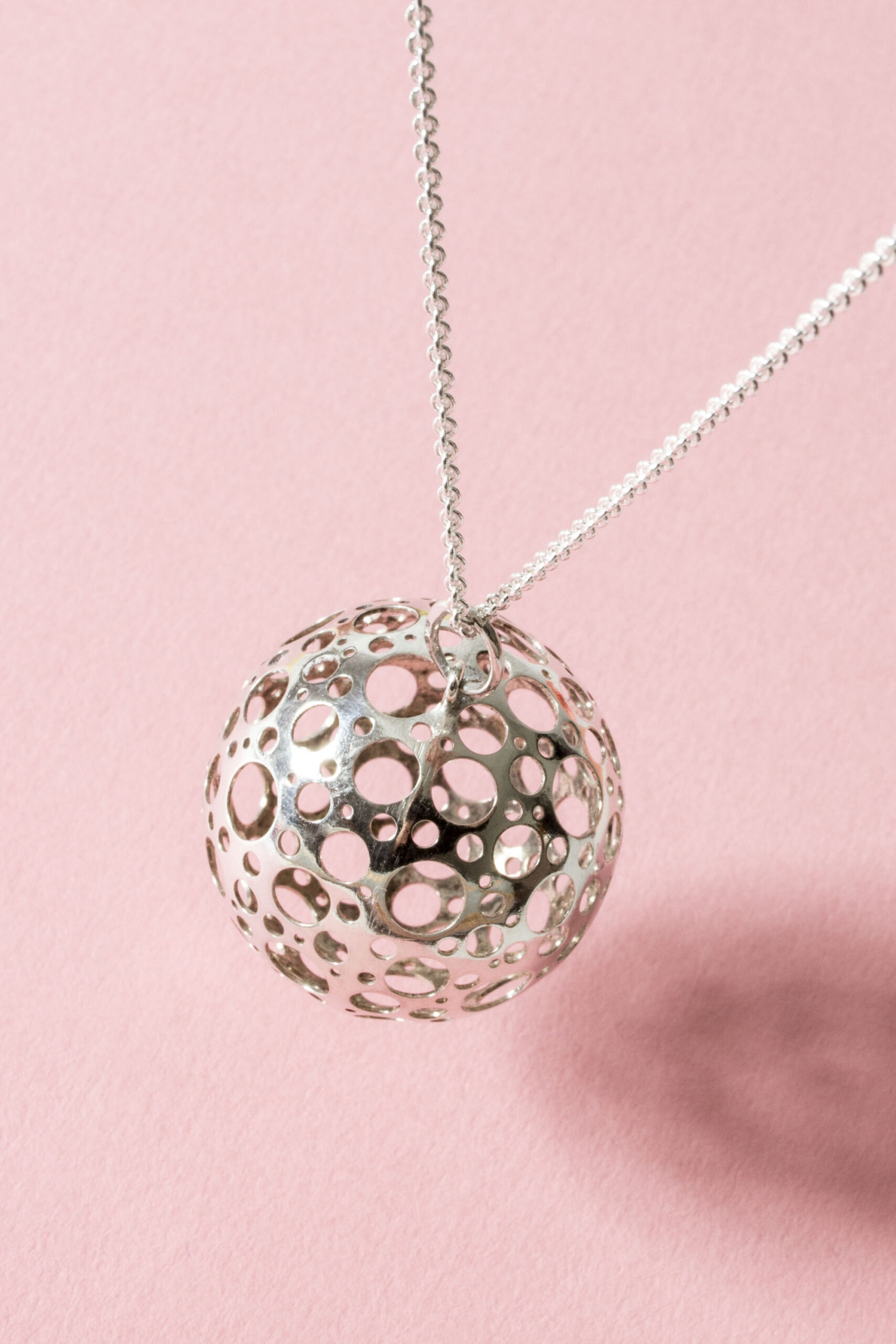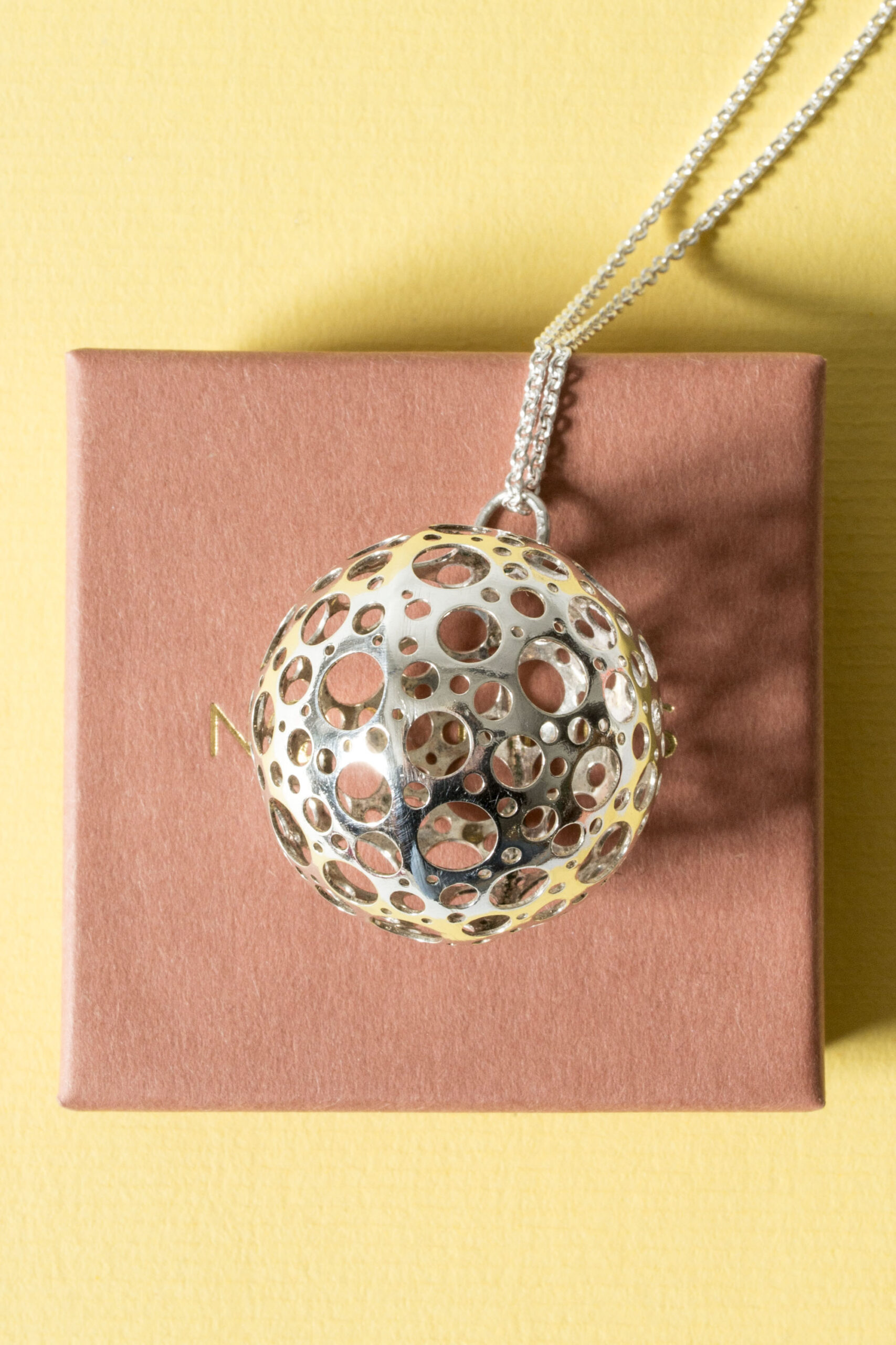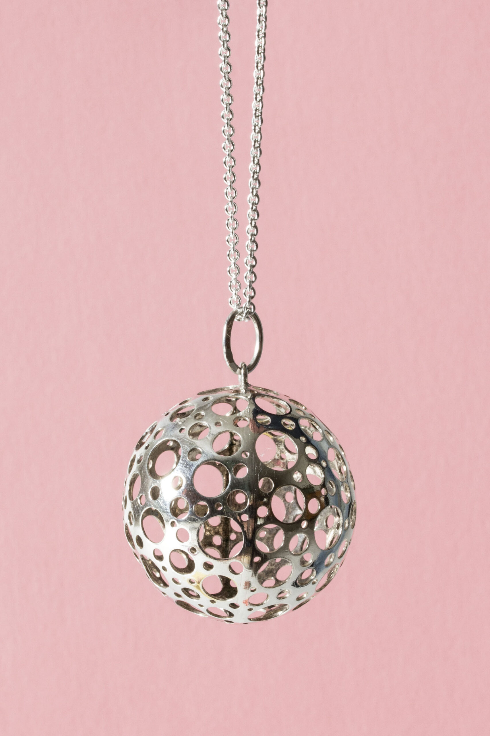 Striking silver “Ladybird” (“Leppäkerttu”) pendant by Liisa Vitali. Large, volumnious design with a pattern of cutout holes.