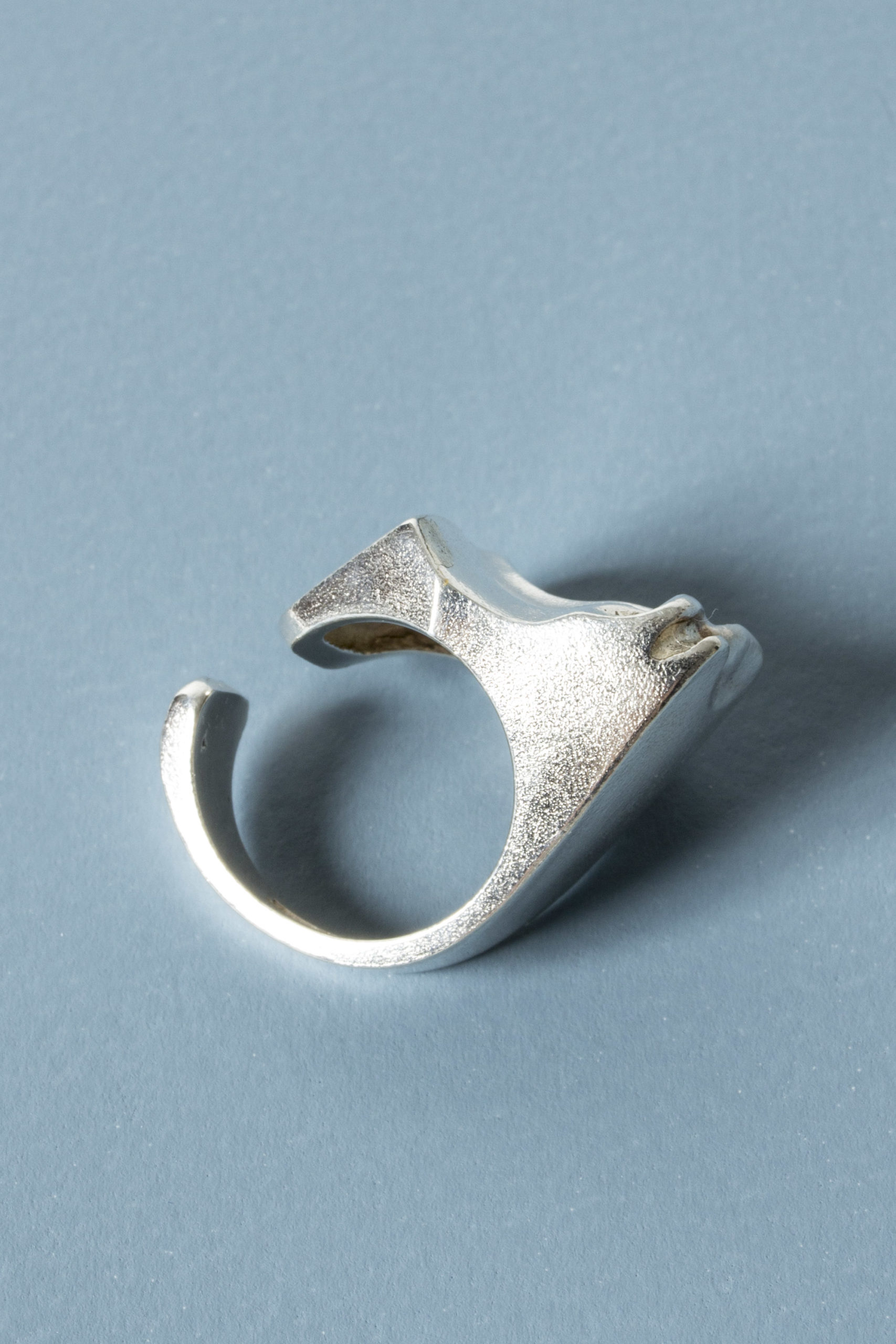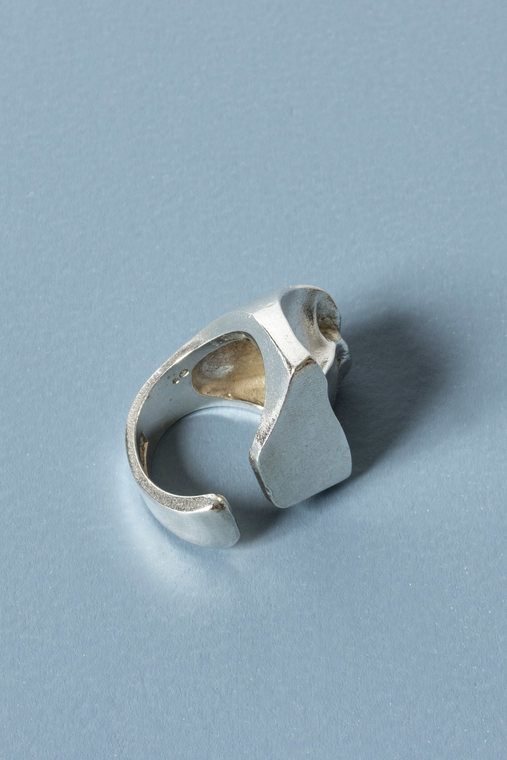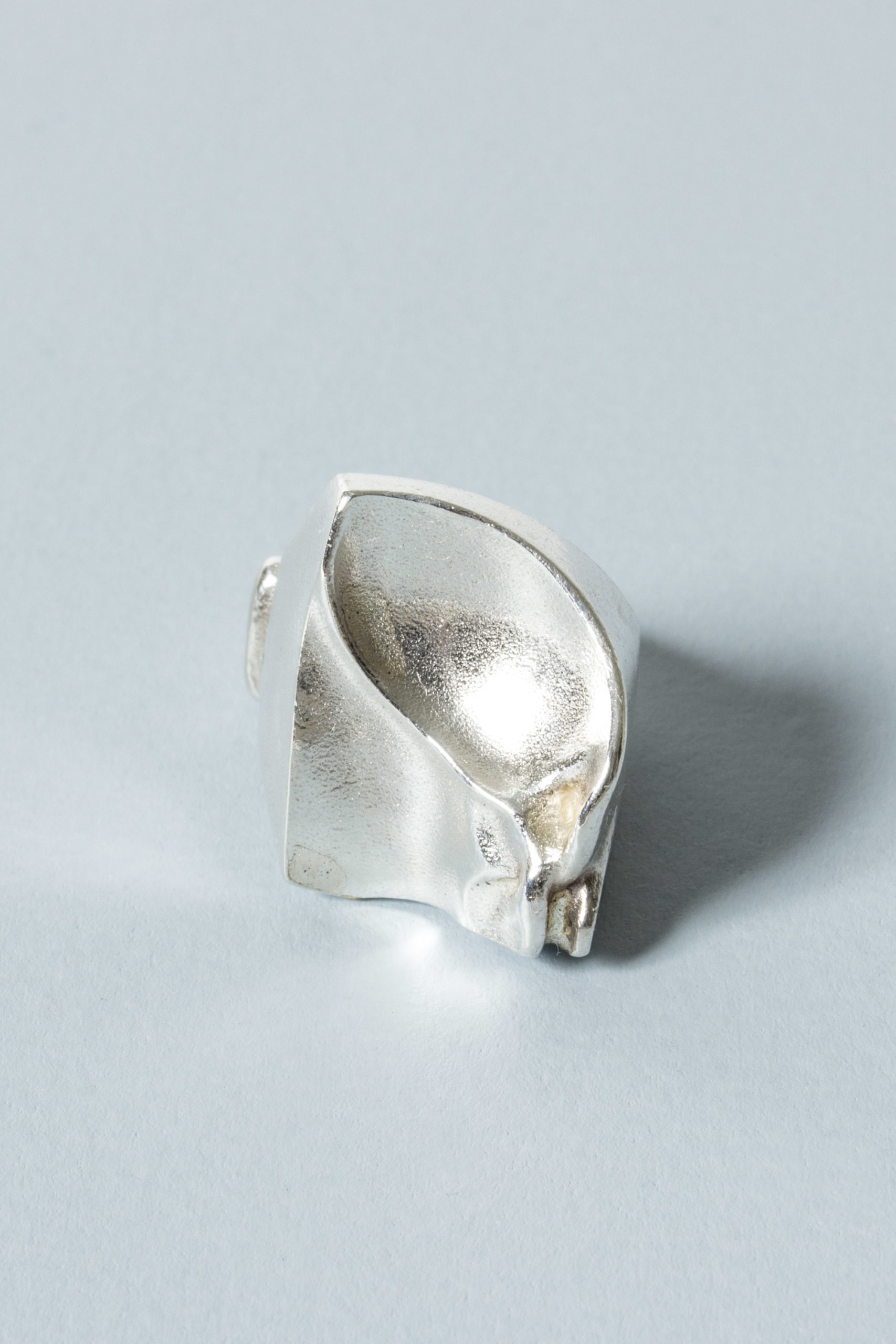 Cool “Sagitta” ring by Björn Weckström, made from silver in an organic, space inspired design. The structured surface reflects the light in different ways, creating an enigmatic effect.